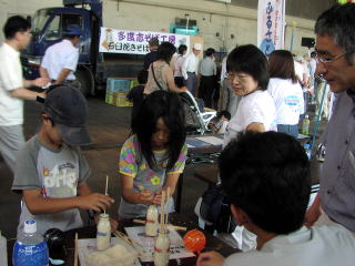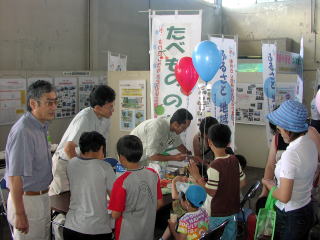 当財団でも、“「水」の健康、「土」の健康、「農産物」の健康、「人」の健康、そして「食の安全と安心の確保」”を視点として事業展開を行っていますので、昨年度に引き続き、平成17年7月23日(土)に深川市地方卸売市場で行われたイベントに参加しました。