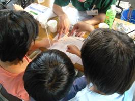 子供実験コーナーでは、生活排水による汚濁の影響について体験をして頂きました。
