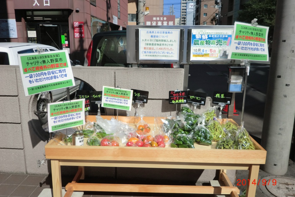広島県土砂災害復興支援として無人野菜市を設置しました。