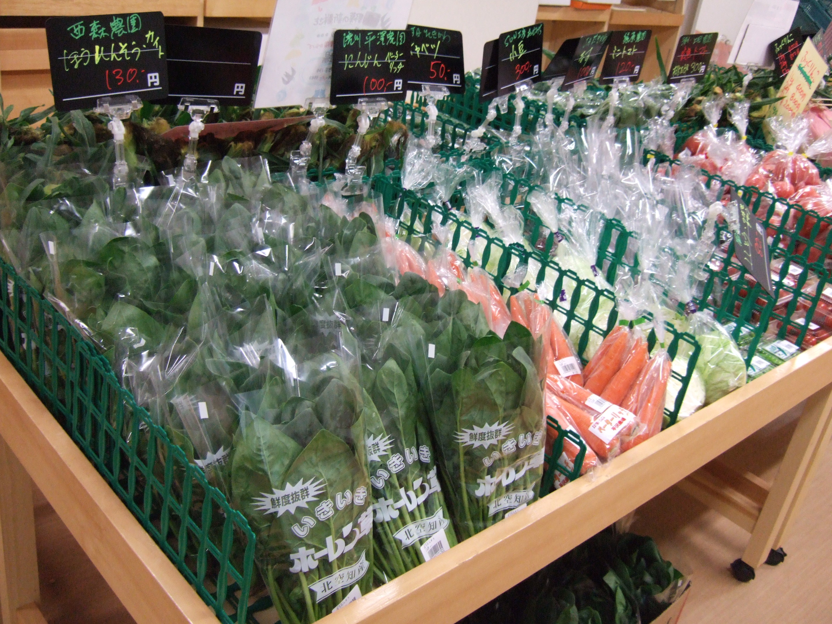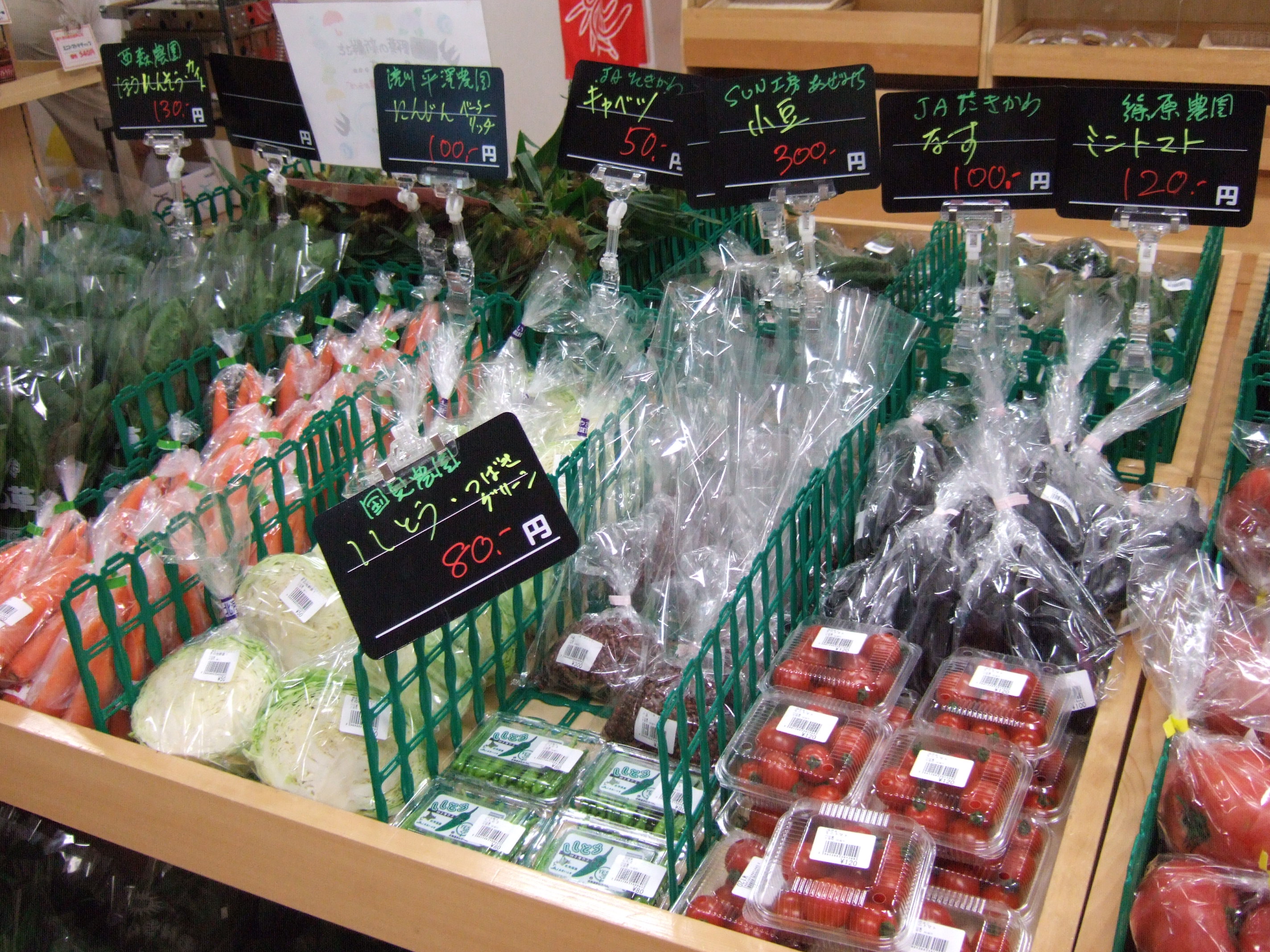 トマト、玉ねぎ、にんじん、ばれいしょ など、多くの野菜が並びました。
