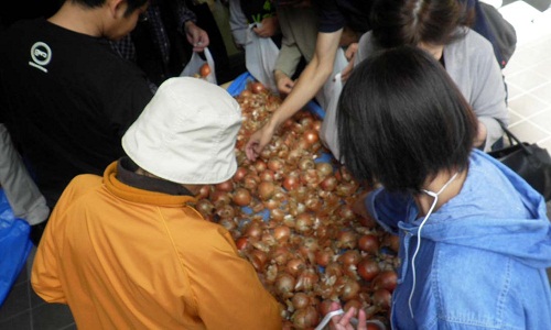 たくさんのタマネギを詰めて、にっこり!
