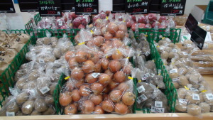 ゴボウ、赤カブ、長ネギ、キャベツ、ブロッコリー、カボチャ、ジャガイモ、タマネギ、ホウレンソウ、リンゴなど、多くの種類を販売いたしました。
