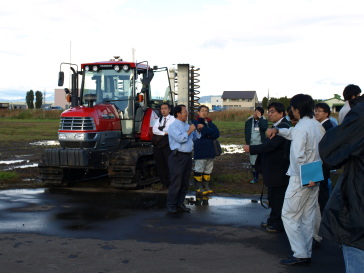 深川での実用化試験は、現段階でのRTK-GPSレベラーの開発状況を深川市周辺地域の生産者をはじめ、利活用が想定される関係機関の皆様方に知っていただき、今後の実用化に向けた課題点等について検討することを目的としたものです。