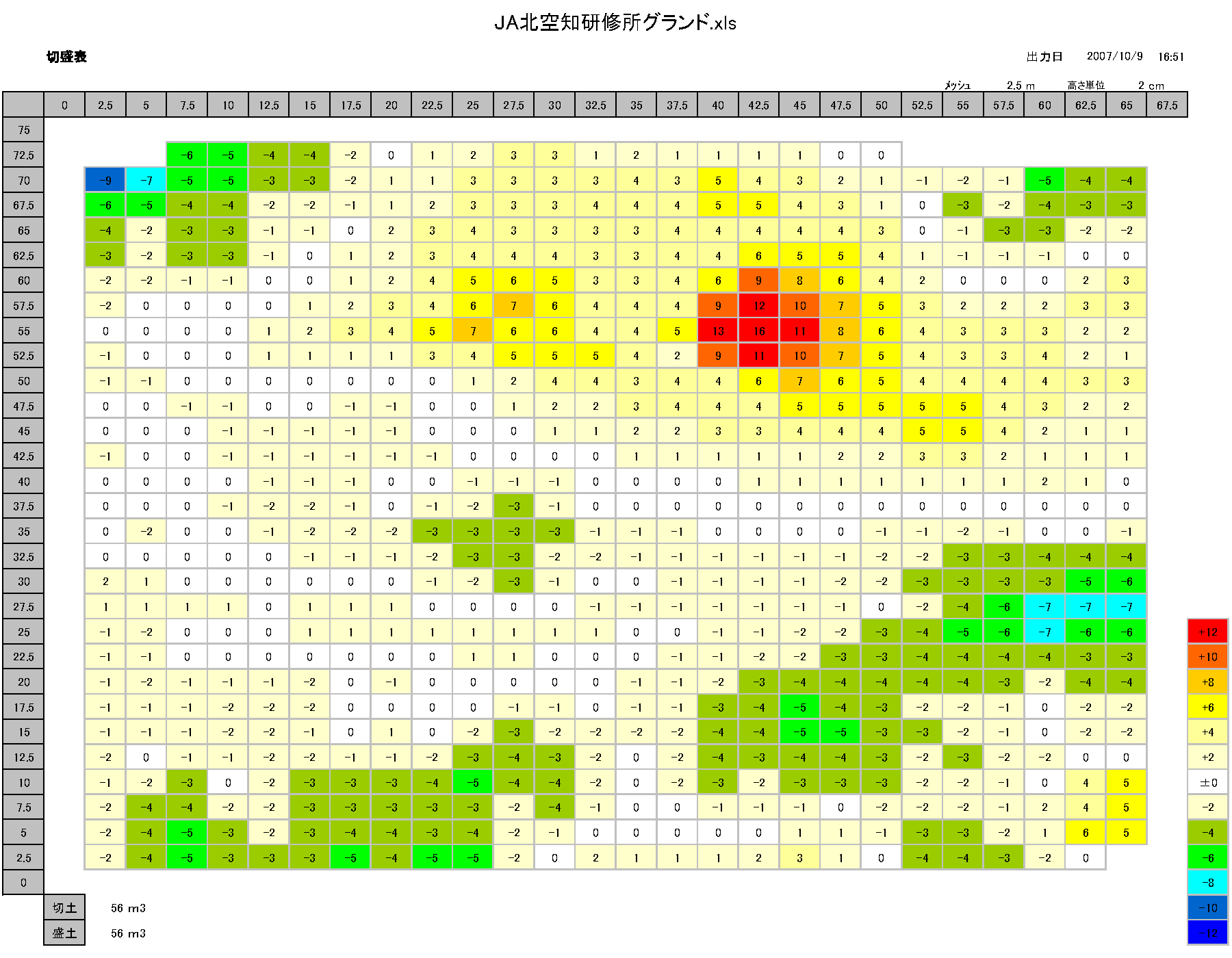 - 圃場高低マップ、切土・盛土、土量計算、面積計算可能。