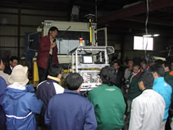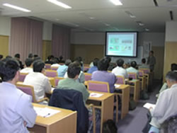 澁澤教授から、精密農法の考え方と、今後精密農法を導入していくための活用法についての講演が行われました。また、山崎氏からは土壌センサの開発に関する説明と、前日に行われた実地走行の様子を撮影したビデオが提示されました。