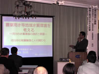 高野氏の講演では、水道水源の水質悪化に関係する藻類について、弊害を起こす藻類の紹介と、生育に関わる条件、発生を抑制する条件についてのお話がありました。