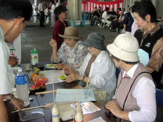 当財団でも、“「水」の健康、「土」の健康、「農産物」の健康、「人」の健康、そして「食の安全と安心の確保」”を視点として事業展開を行っていますので、昨年度に引き続き、平成17年7月23日(土)に深川市地方卸売市場で行われたイベントに参加しました。