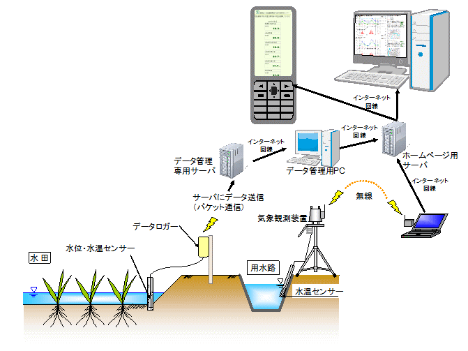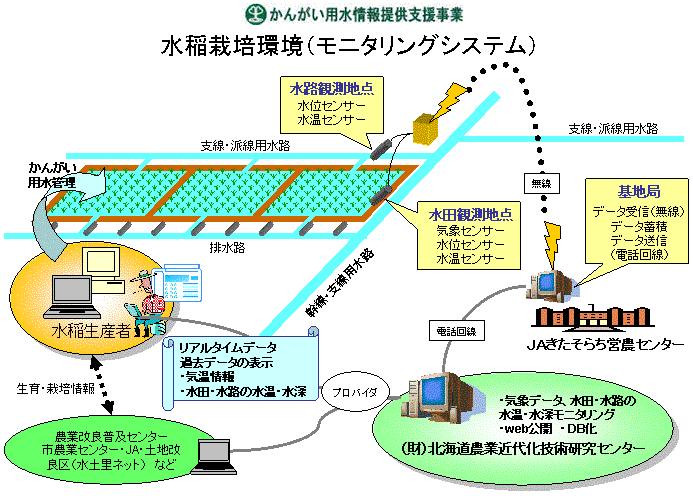このような背景から、冷害対策の一つとしてIT技術を活用した水管理支援システムを構築することを目的に、『かんがい用水情報提供支援事業』を開始いたしました。