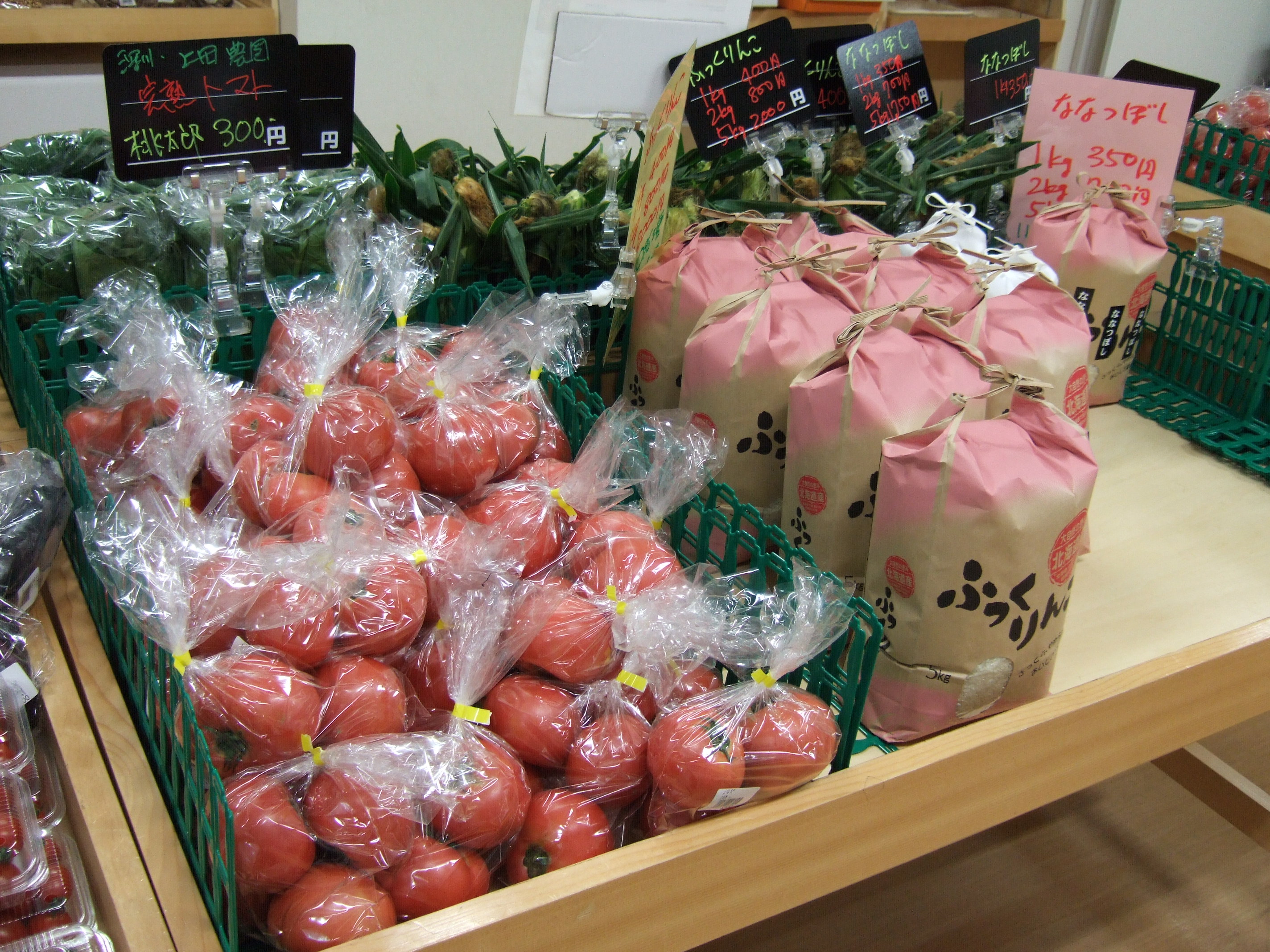 トマト、玉ねぎ、にんじん、ばれいしょ など、多くの野菜が並びました。