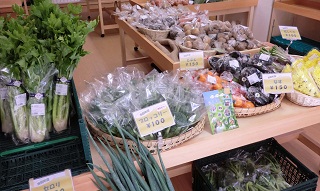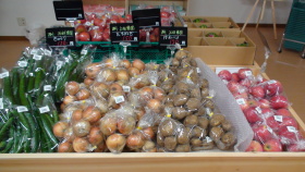ごぼう、長ネギ、ニンジン、タマネギ、ジャガイモ、ほうれんそう、だいこん、完熟トマト、きゅうり、・・・等、多くの種類を販売いたしました。野菜は、いつも大人気です。