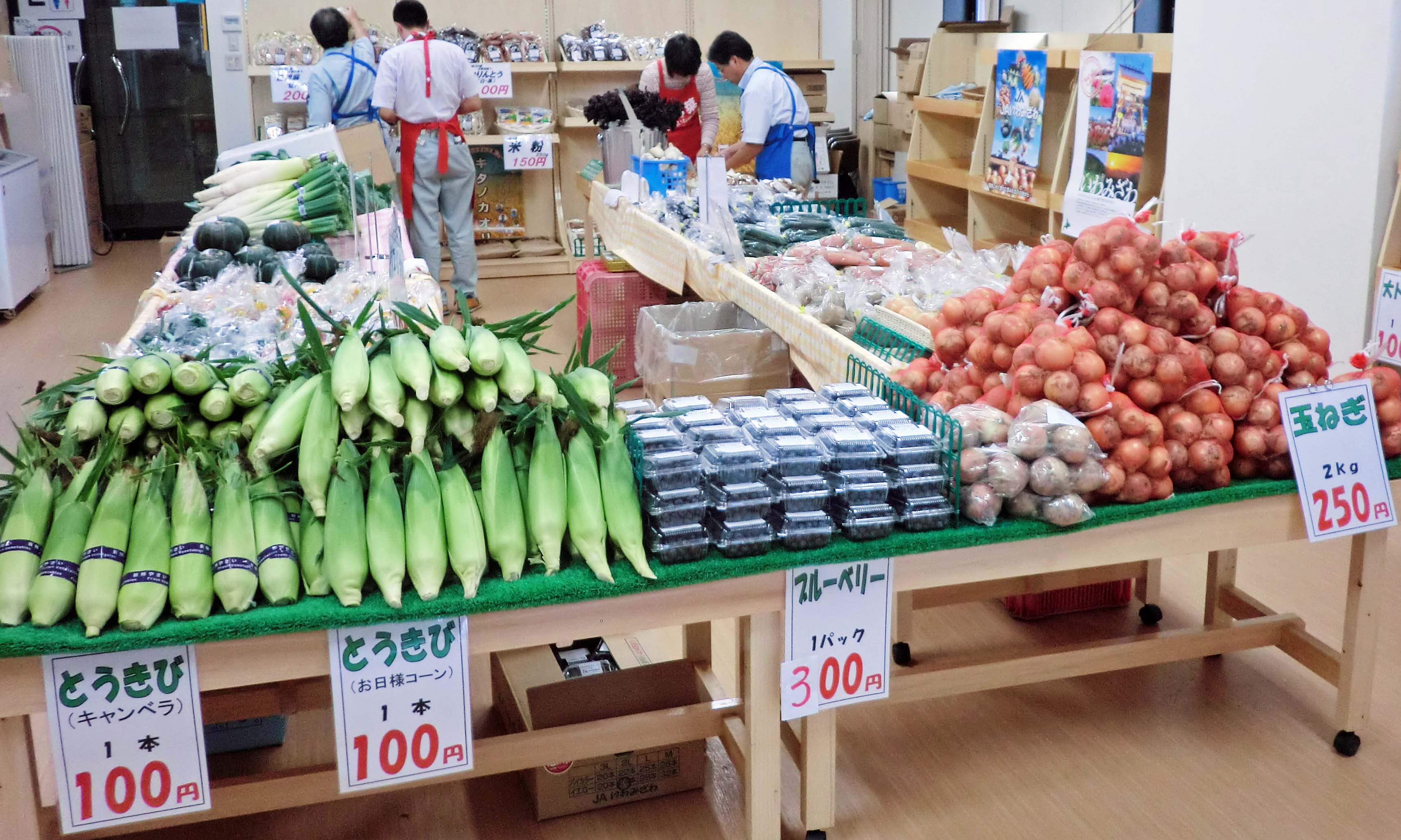 スイカ、完熟トマト、新じゃが、新タマネギ、もぎたてスイートコーン、カボチャ、ニンジン、きゅうり、にんにく、アスパラ、ホウレンソウ、ピーマンなど、多くの種類を販売いたしました。